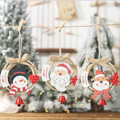 六分埔禮品★木環帶鈴鐺掛件(聖誕老人/雪人/麋鹿)★(現貨/發票)-耶誕節 聖誕節 聖誕樹吊飾