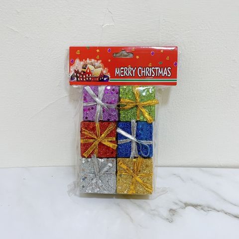 六分埔禮品★彩色亮片禮物包(混色6入)(3款尺寸)★(現貨/發票)-聖誕節/聖誕樹佈置/禮物盒吊飾