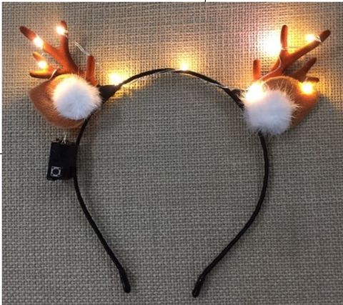 六分埔禮品★LED貂毛球絲絨耳咖啡鹿角髮箍(暖白燈)★(現貨/發票)-耶誕節聖誕節麋鹿髮箍
